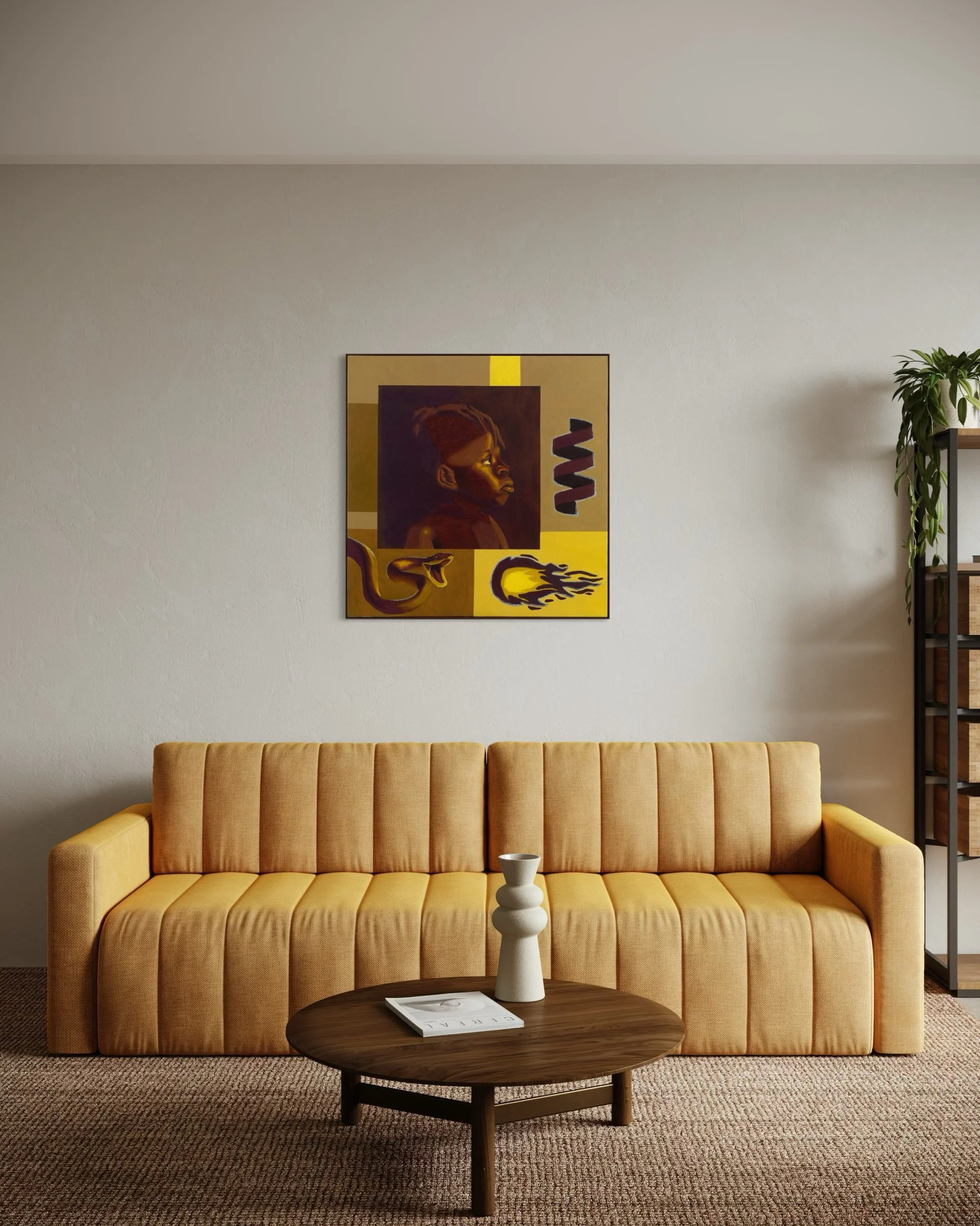Despite the charged content, the work doesn’t rely on shock. Jackson’s confident handling of paint—loose, layered, almost casual in its execution—grounds each piece in a physicality that mirrors the emotional terrain he’s exploring. It’s seductive, but not slick; sensual, but never sentimental. In a visual culture saturated with performance and pose, his work dares to pause, to look longer, and to ask what it really means to be seen.